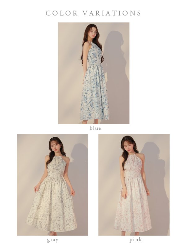 Lサイズあり【DEA./ディア】花柄/ ホルターネック/ フレア/ ロング/ ワンピース/ ミモレ丈/ ミディアムドレス/ キャバドレス long[OF08]