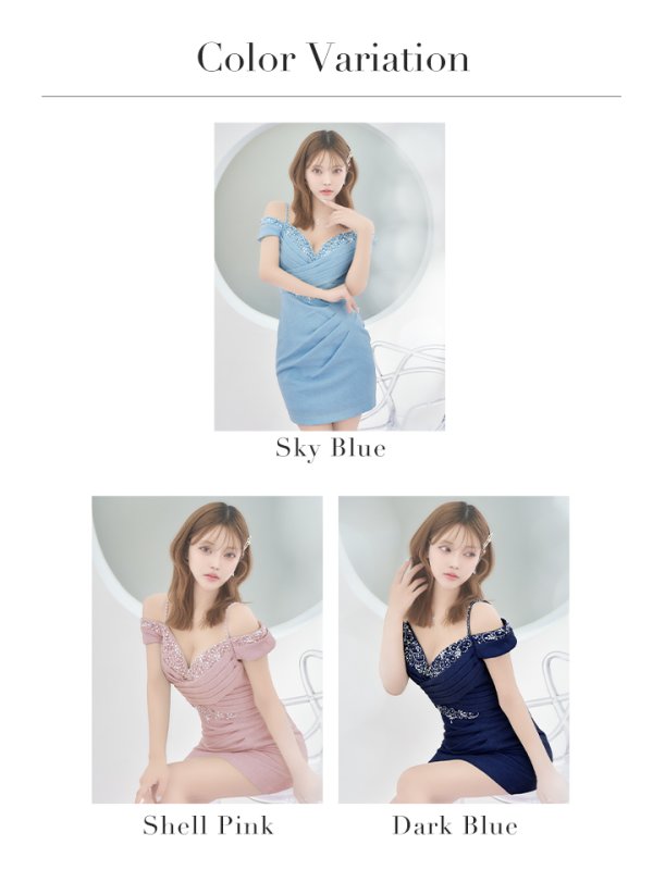 XSサイズあり【IRMA/イルマ】ラメニット/ ビジュー/ オフショル/ タック/ カシュクール/ ストレッチ/ タイト/ ミニドレス/ キャバドレス[OF2A] [51773-IR-DKBL-S250324]