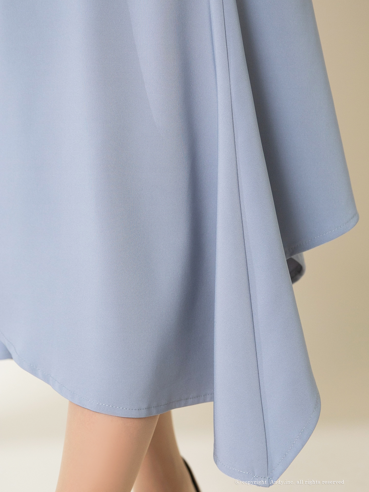 透け感のあるフレアスリーブで気になる二の腕をカバーし、ハイウエスト切替でスタイルUP効果◎