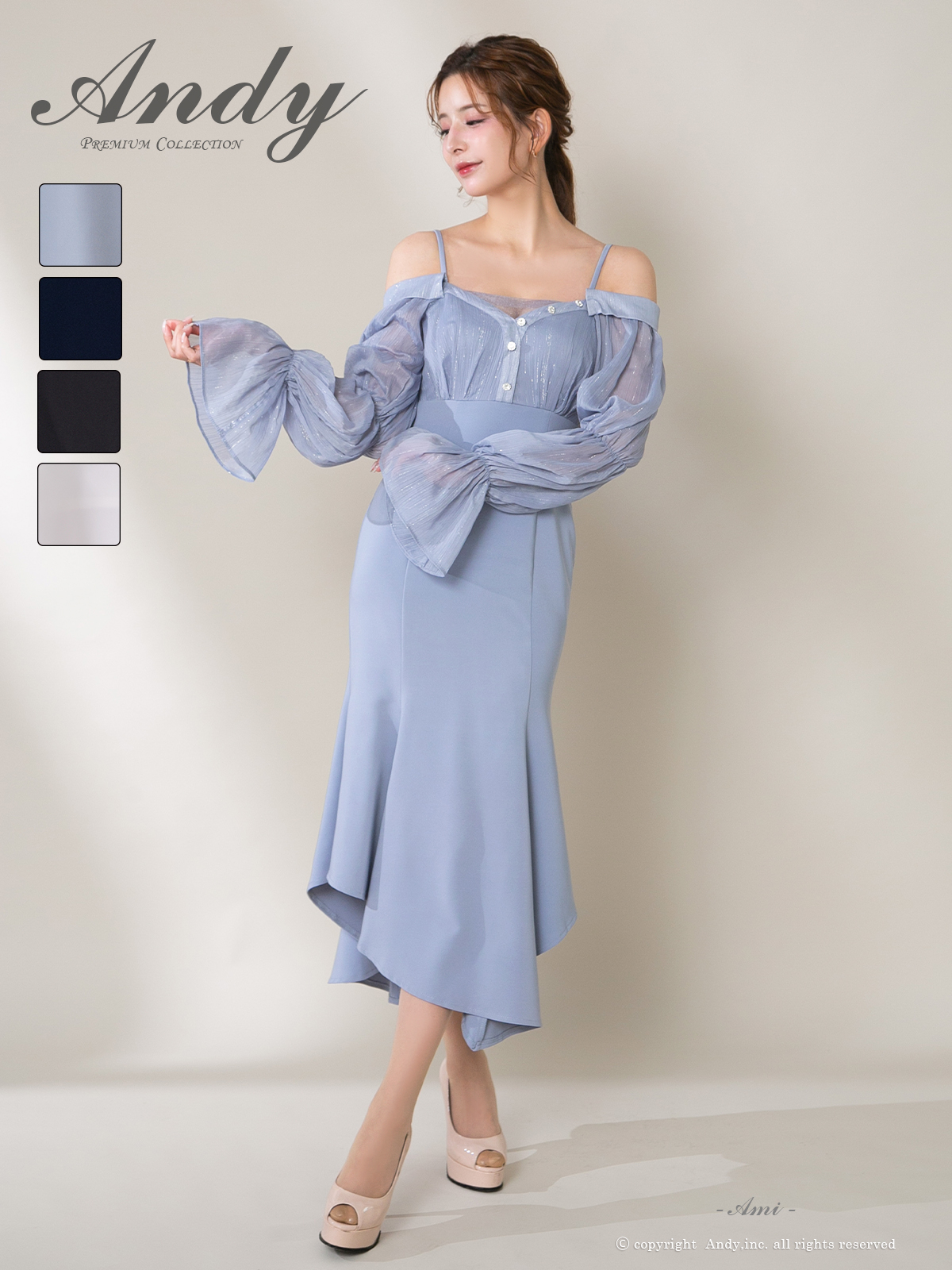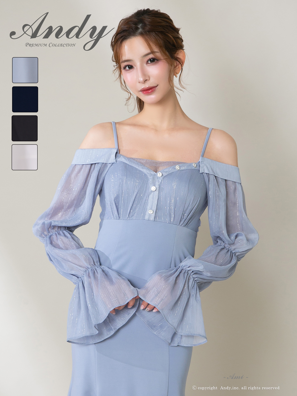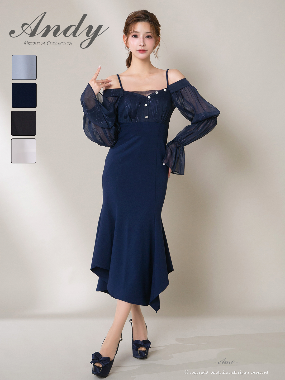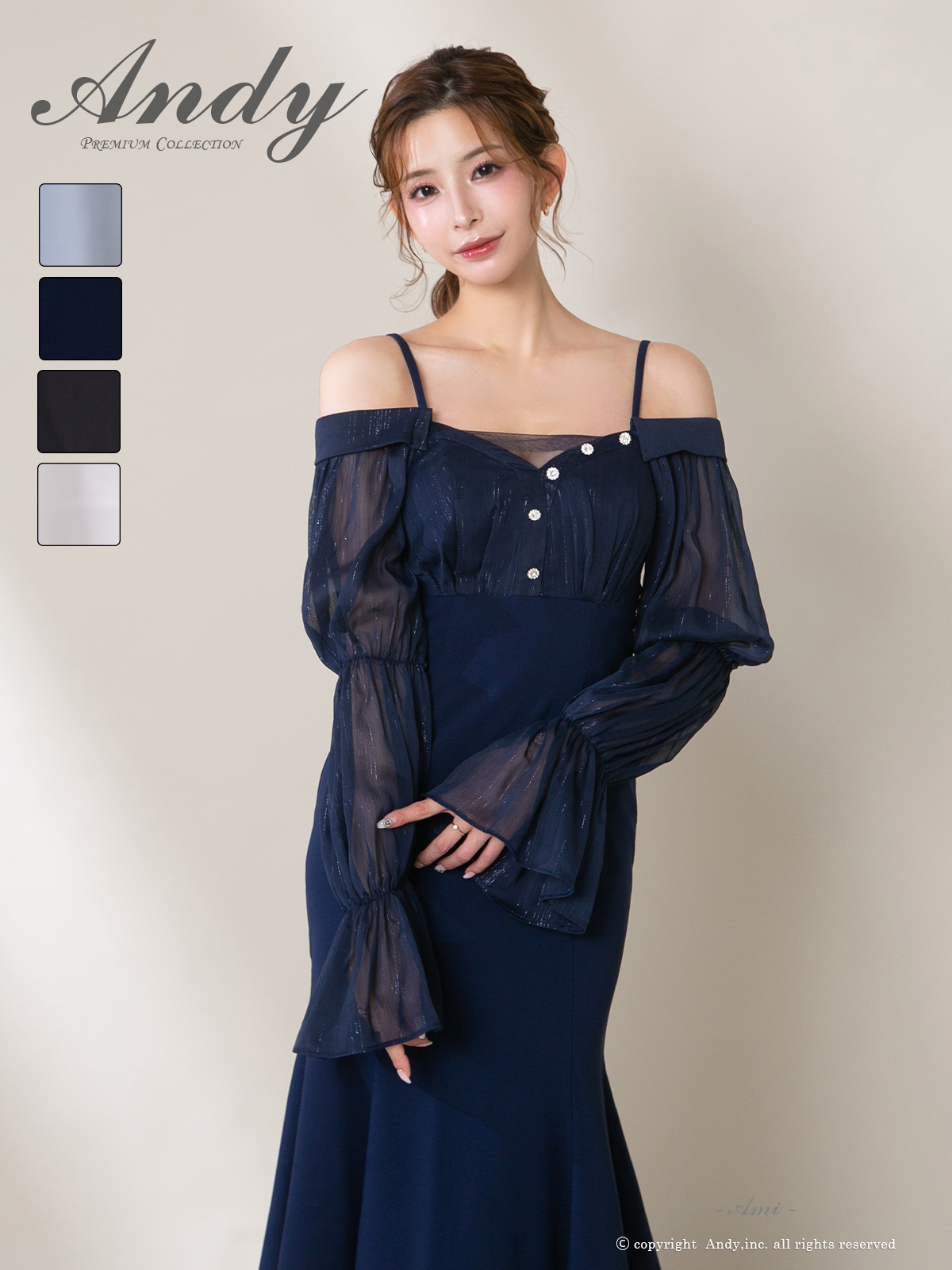 - > 【ANDY/アンディ】 オフショルダー/ 長袖/ 袖あり/ バストシアー/ キャミソール/ ミディアムドレス/ キャバドレス[OF05]