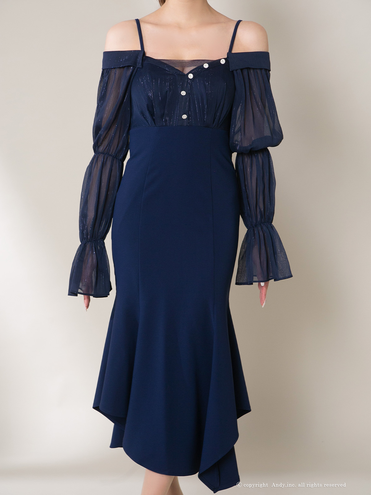 【ANDY/アンディ】 オフショルダー/ 長袖/ 袖あり/ バストシアー/ キャミソール/ ミディアムドレス/ キャバドレス[OF05] [ON2919-W-2503]
