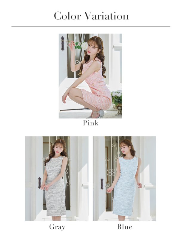 - > XS-Lサイズあり 【GINZA COUTURE/銀座クチュール】ミックスツイード/ ボートネック/ ノースリーブ/ タイト/ 膝丈/ ワンピース/ ミディアムドレス/ キャバドレス[OF2]