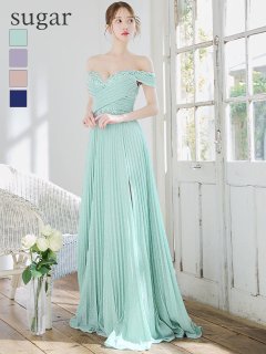 上品に煌めくラメ生地にあしらわれたビジューが高級感溢れ、ロングスリットでご自慢の美脚をアピール◎