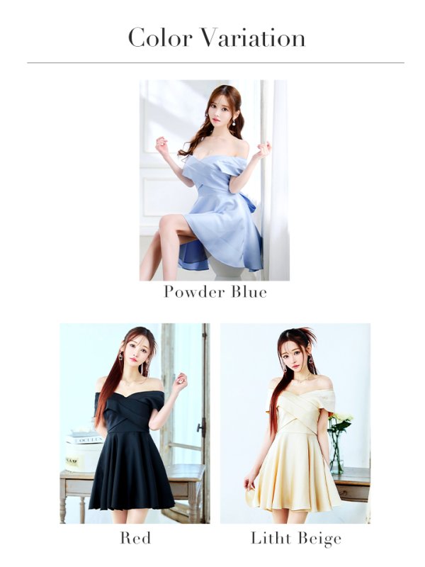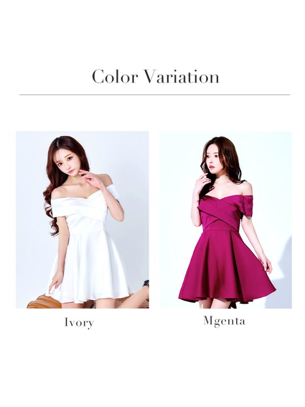 - > XS-Lサイズあり【Donia Quinn / ドニアクイーン】 シンプル/ オフショルダー/ フロントクロス/ フレア/ ミニドレス/ キャバドレス[OF05]