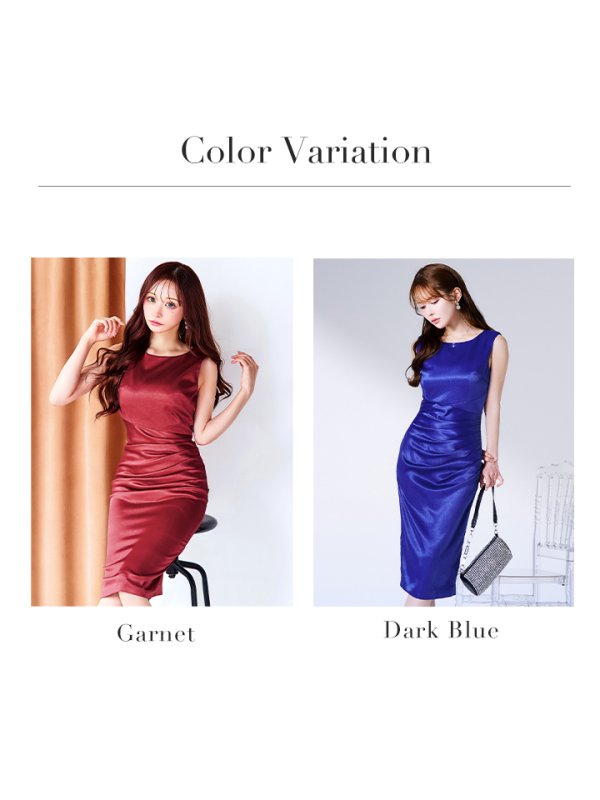 - > 【ISA FERRIS/ イサフェリス】【OF05】シンプル/ ノースリーブ/ サイドタック/ サテン/ 膝丈/ タイト/ ミディアムドレス/ キャバドレス
