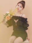 ふんわりパフスリーブで気になる二の腕をカバーしつつ、バストを強調するフロントデザインでセクシーさも◎