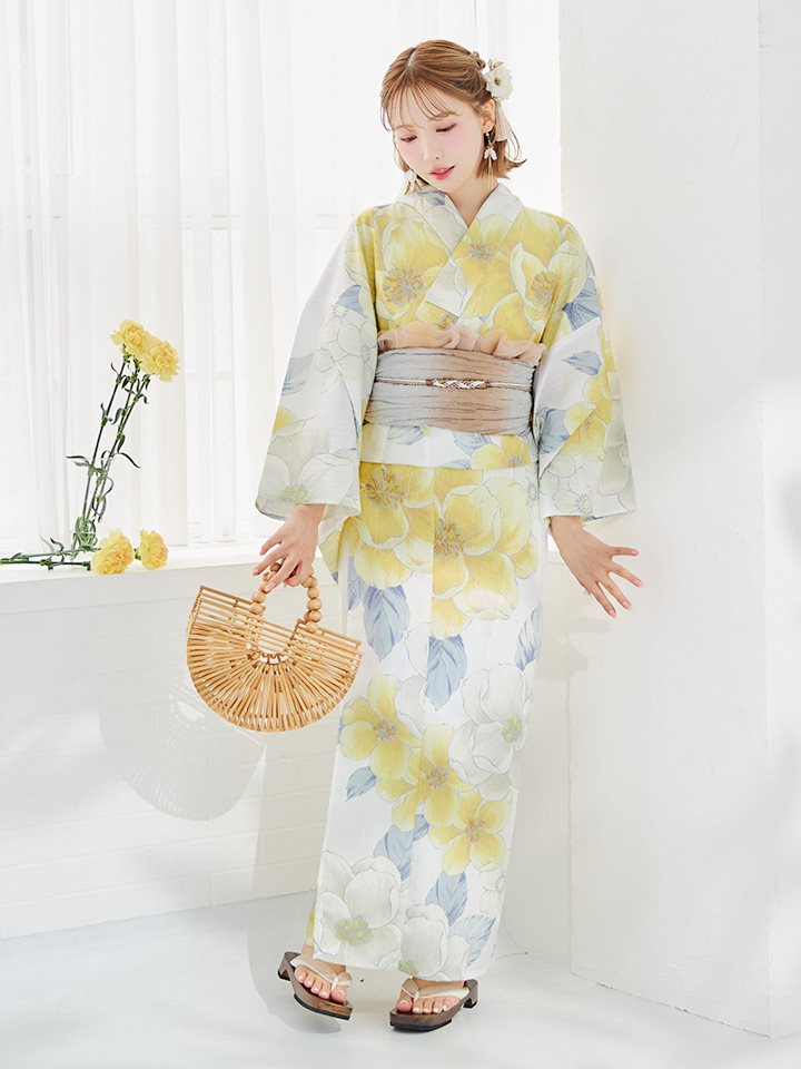 濃いめの帯でグッと締めて大人っぽく着こなして。