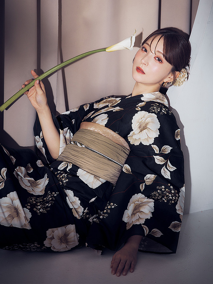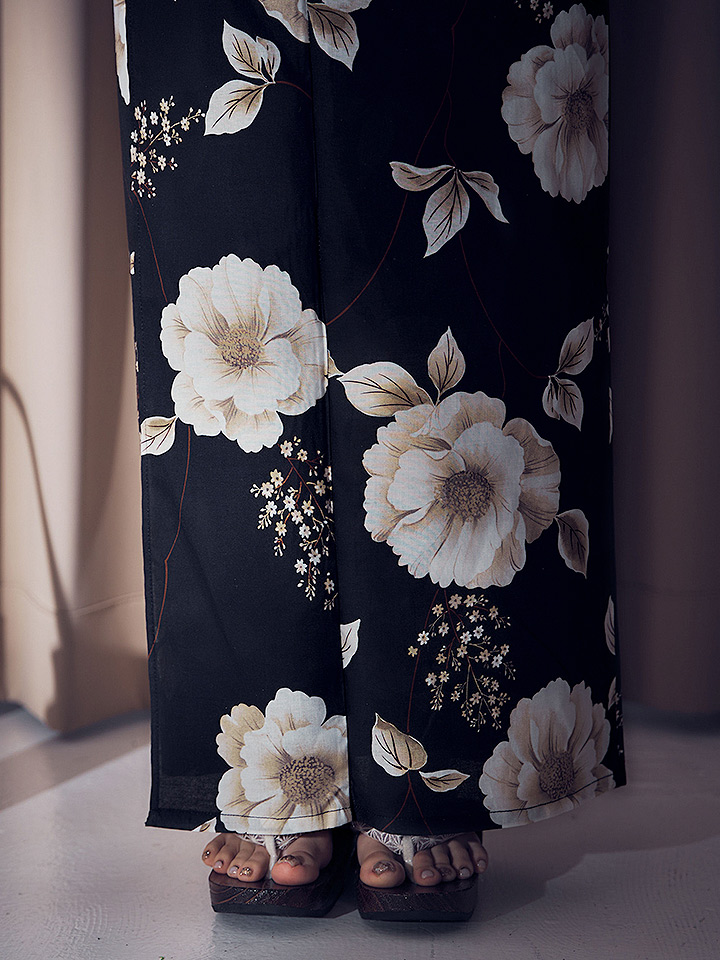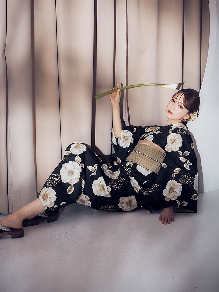 上品に浴衣を彩る花柄が印象的な浴衣