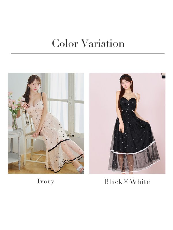 - > XSサイズあり【ROBE de FLEURS/ローブドフルール】パール/ ドットチュール/ ウエストカット/ フレアロング/ ミディアムドレス/ キャバドレスlong[OF08]