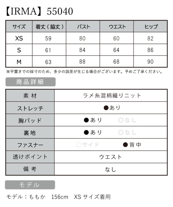 B:84 / W:64 / H:86 [着丈](脇下):約61cm |