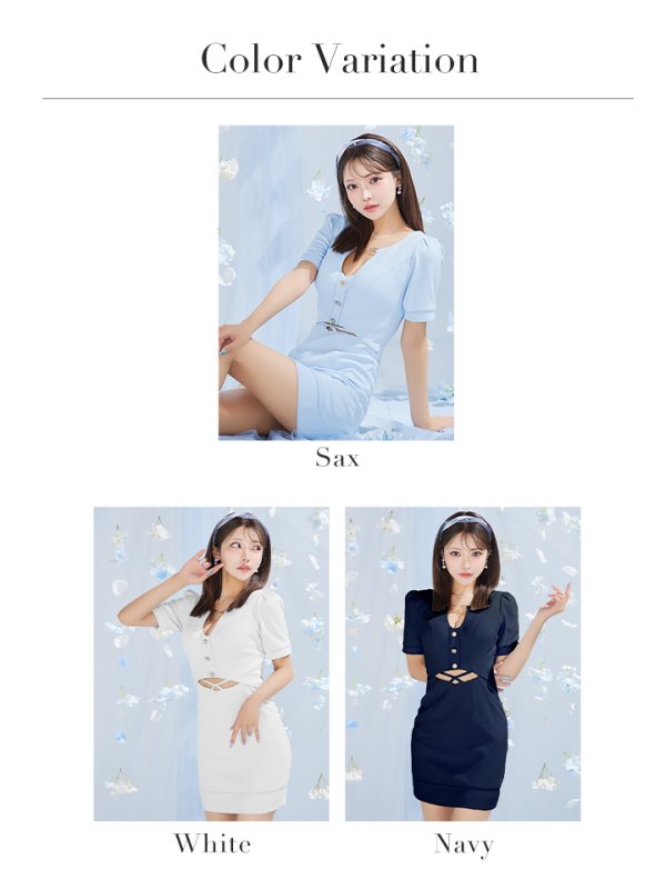 - > XSサイズあり【IRMA/イルマ】フロントバックル/ ボタン/ ウエストクロス/ 半袖/ 袖あり/ タイト/ ミニドレス/ キャバドレス[OF2A]