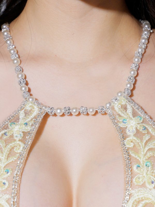 XSサイズあり【ANGEL R/エンジェルアール】ホルターネック/ パール/ レース/ メッシュ/ タイト/ ミニドレス/ キャバドレス[OF2] [AR25220-P-S250421]