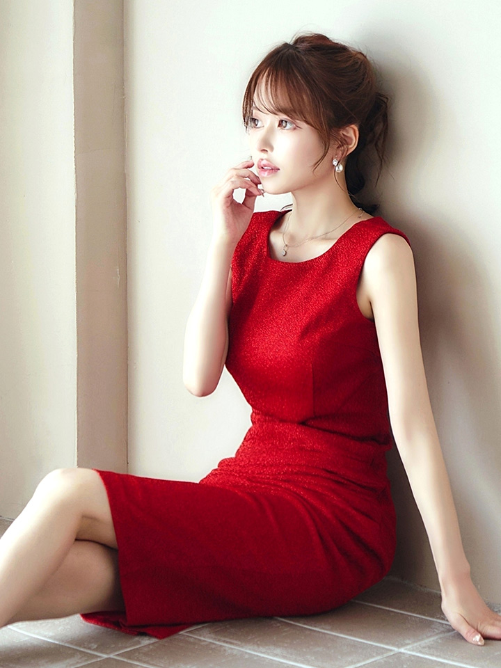 上品に煌めくラメ生地が華やかなミディアムタイトドレス♡