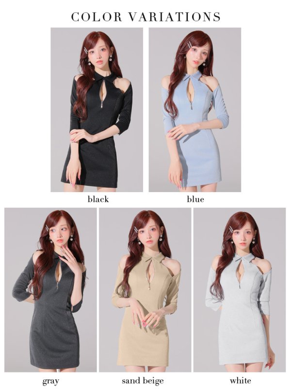 - > XSサイズあり【Glossy/グロッシー】襟デザイン/ オフショル/ バストジップ/ ミニドレス/ キャバドレス[OF08]