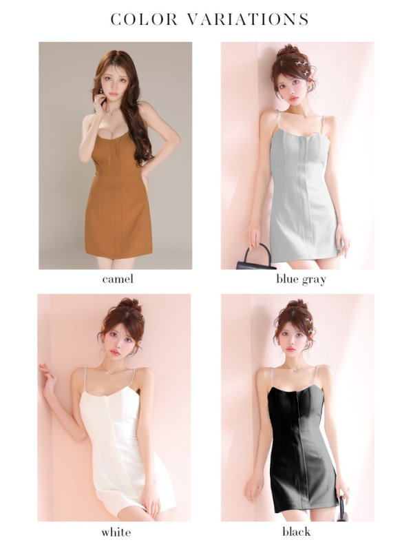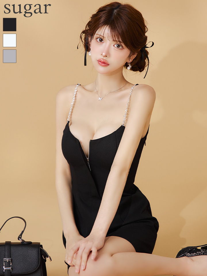- > XSサイズあり【ROBE de FLEURS/ローブドフルール】シンプル/ タイト/ フロントジップ/ 背中魅せ/ キャミ/ ミニドレス/ キャバドレス[OF08]