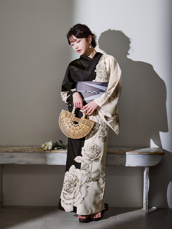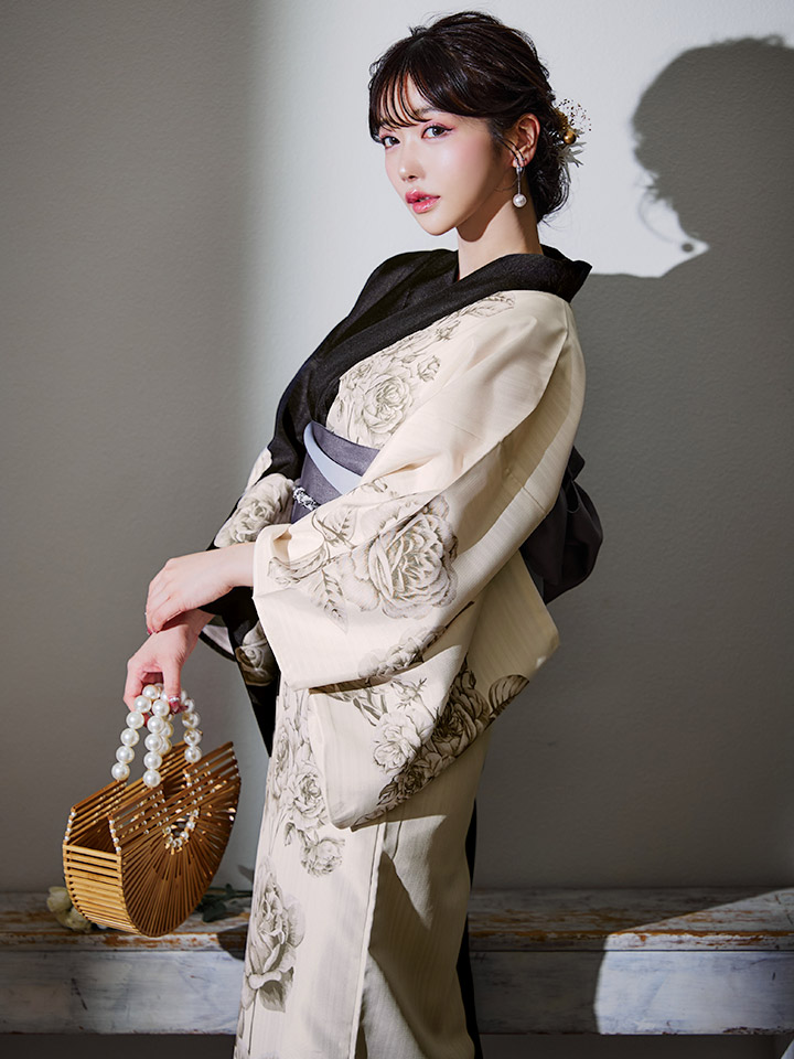 【残りわずか!】【即日発送】【Riuコラボ】ツートンカラーローズ浴衣【浴衣3点セット 浴衣/帯/下駄】[YMT] [Y-9267-nz-dzc-B-25RC]