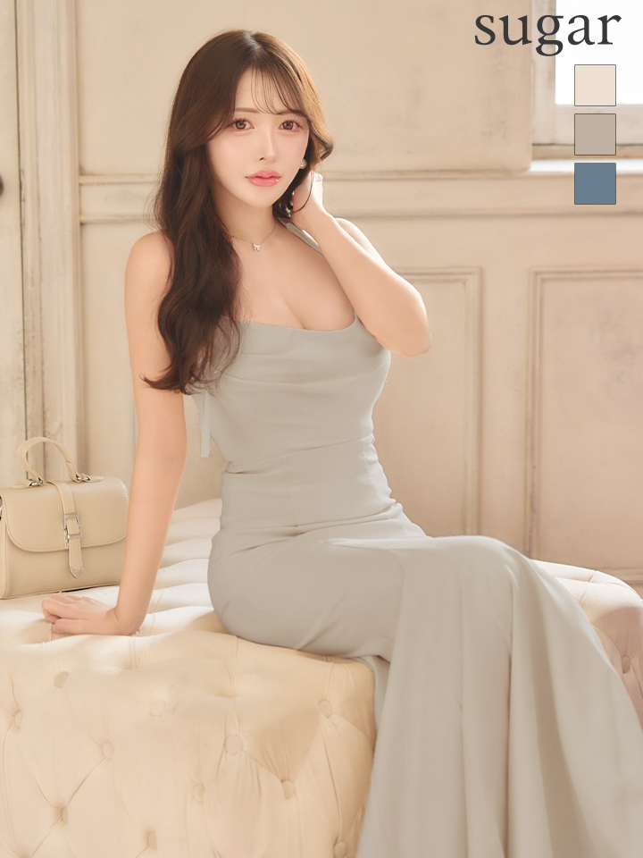 Lサイズあり【DEA./ディア】シンプル/ ドレープ/ ホルター/ マーメイド/ ロングドレス/ キャバドレス long[OF08] [DE3373-Greige-S250507]