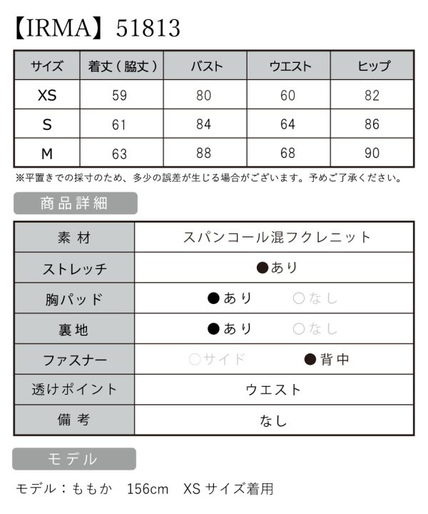 B:84 / W:64 / H:86 [着丈](脇下)約61cm |