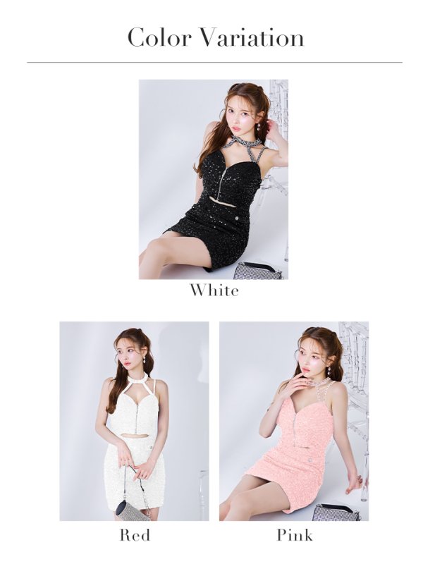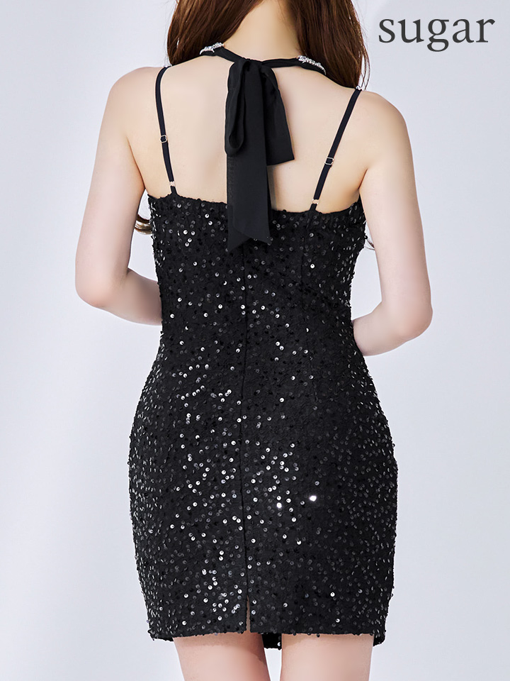 - > XSサイズあり【IRMA/イルマ】スパンコール/ フロントジップ/ ホルター/ キャミ/ カットアウト/ ストレッチ/ タイト/ ミニドレス/ キャバドレス[OF2A]