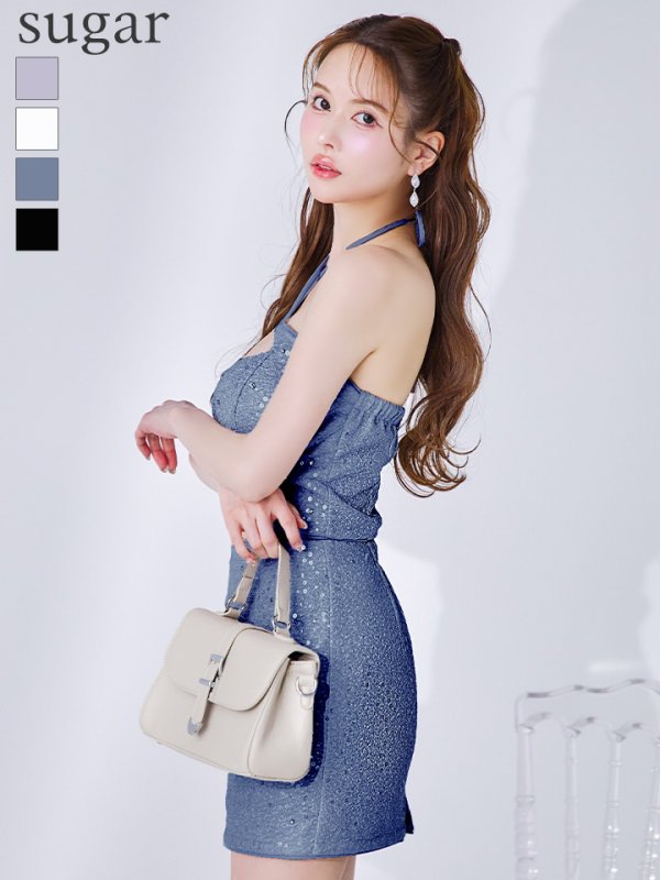- > XSサイズあり【Glossy/グロッシー】スパンコール/ ラメツイル/ セットアップ/ ミニドレス/ キャバドレス[OF08]