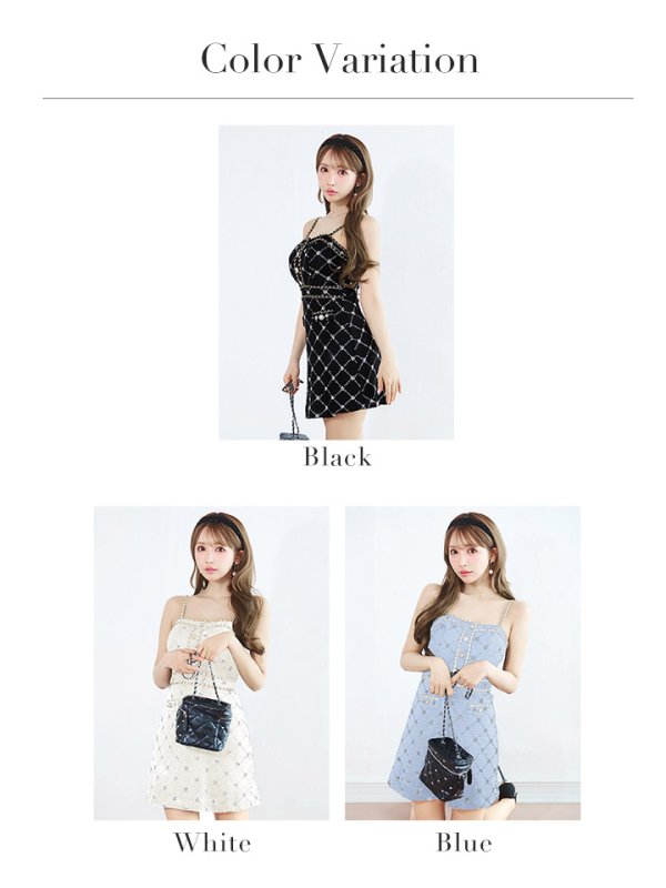 sugarオリジナルカラー・XSサイズあり【IRMA/イルマ】ニット/ スパンコール/ ダイヤ柄/ キャミ/ ストレッチ/ フレア/ ミニドレス/ キャバドレス[OF2A] [51814-IR-B-S250510]