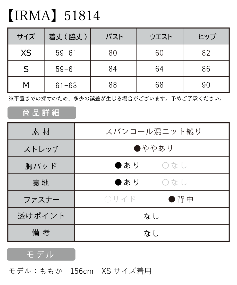 B:84 / W:64 / H:86 [着丈](脇下)約61cm |