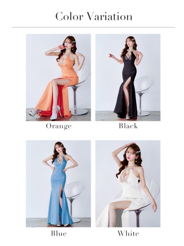 【ANGEL R/エンジェルアール】ホルターネックデザイン/フロントビジュー/レース/タイトロングドレス[OF2]
