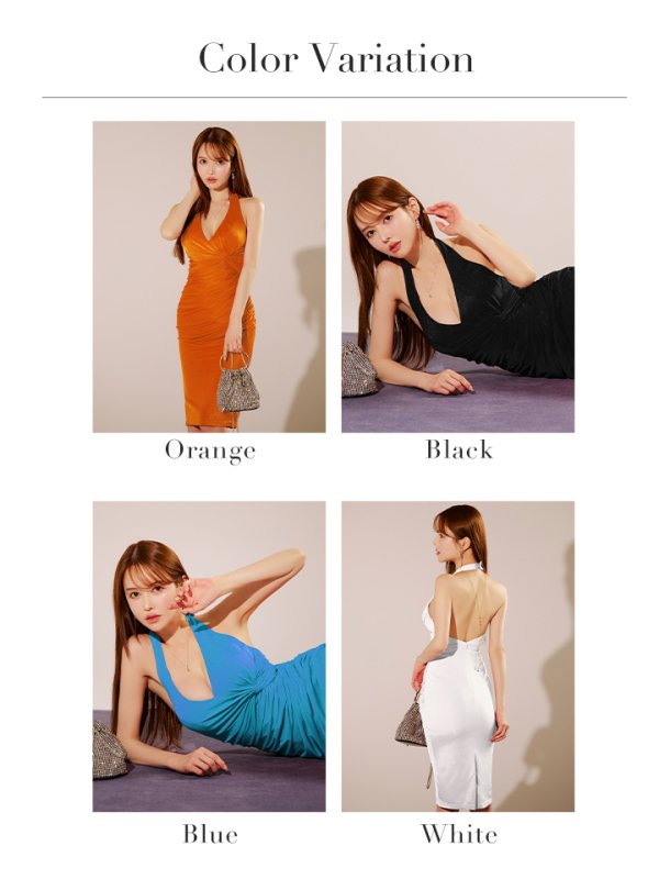 - > XSサイズあり【Veautt/ヴュート】【OF05】バックチェーン/ フロントギャザー/ ミディアム/ タイト/ ミディアムドレス/ キャバドレス