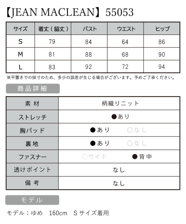 B:80-84 / W:60-64 / H:82-86 [着丈](脇下)約79cm |
