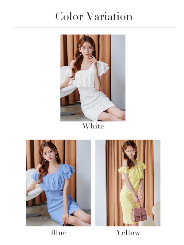 - > Lサイズあり【JEAN MACLEAN/ジャンマクレーン】ワンショル/ フリル/ ショルダーチェーン/ 膝丈/ タイト/ ミディアムドレス/ キャバドレス[OF2A]