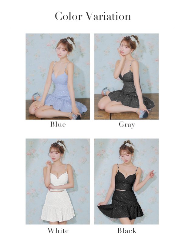XSサイズあり【an /アン】パール/ チェック/ キャミソール/ 裾フリル/ フレア/ セットアップ/ ミニドレス/ キャバドレス[OF05] [AOC3903-B-S250514]