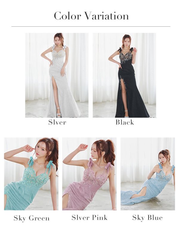 【IRMA/イルマ】ビジュー/ 刺繍/ スパンコール/ ラメニット/ スリット/ タイト/ ロングドレス/ キャバドレス long[OF2A] [51839-IR-B-S250519]