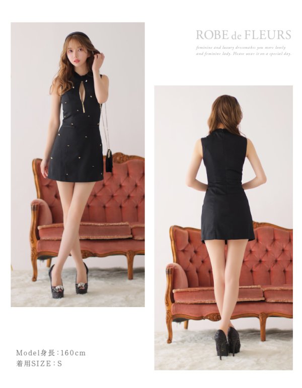 - > XS-Lサイズあり【ROBE de FLEURS/ローブドフルール】ハイネック/ ジッパー/ ワンカラー/ ノースリーブ/ Aライン/ ミニドレス/ キャバドレス[OF08]【一部予約商品/12月上旬発送予定】