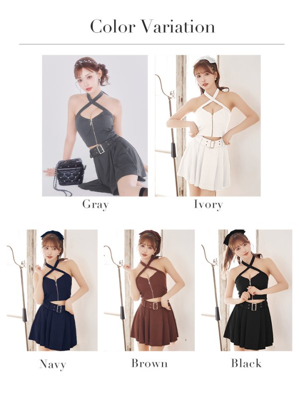 XSサイズあり【Glossy/グロッシー】リブ/ ホルターネック/ バストジップ/ セットアップ/ フレア/ ミニドレス/ キャバドレス[OF08] [GL3352-GY-S250523]