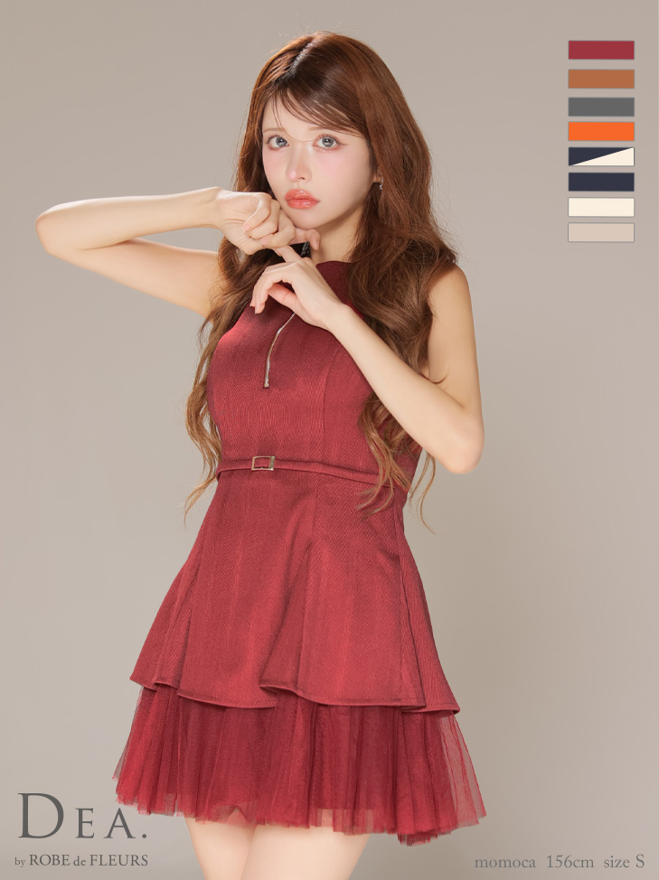 - > XS-Lサイズあり【DEA./ディア】ノースリーブ/ ベルトデザイン/ チュール/ フレア/ ミニドレス/ キャバドレス[OF08]