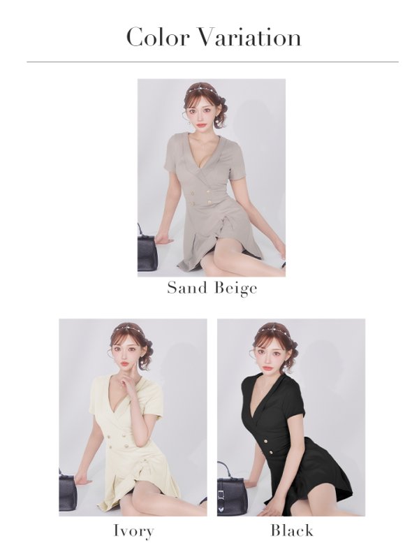 - > XS-Lサイズあり【DEA./ディア】襟付き/ ダブルボタン/ プリーツ/ 半袖/ フレア/ ジャケットドレス/ ミニドレス/ キャバドレス long[OF08]