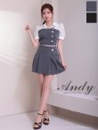 - > XSサイズあり【ANDY/アンディ】バイカラー/ 半袖/ 袖あり/ 襟付き/ ボタン/ プリーツ/ フレア/ セットアップ/ ミニドレス/ キャバドレス[OF05]