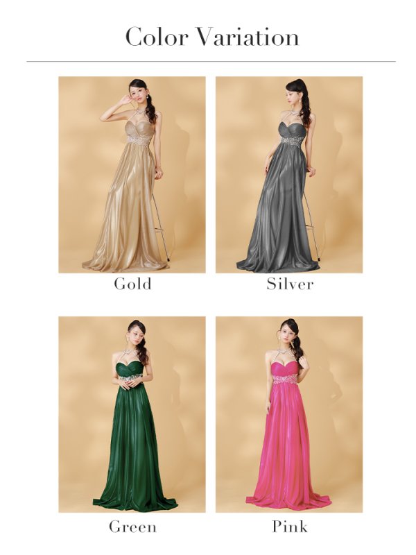 【Lip line/リップライン】ビジュー/ 刺繍/ ラメ/ シアー/ ホルターネック/ フレア/ ロングドレス/ キャバドレス long[HC03] [A-0211-GR-S2505]