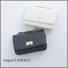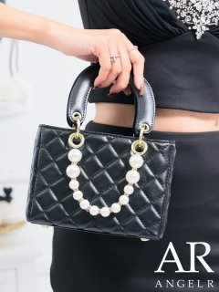 チェーンのショルダーとパールでクールにも上品にも決まります。
