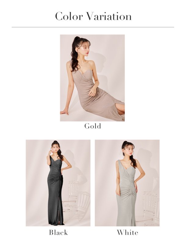 【MONOQLO/モノクロ】ラメ/ ワンショルダー/ アシンメトリー/ ノースリーブ/ ギャザー/ ストレッチ/ スリット/ ロングドレス/ キャバドレス/ long[OF05] [MO23021-W-S250531]