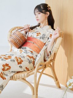 花束フラワーデザインを温かみあるクリーミーなカラーでまとめた品のある女性らしい夏浴衣。