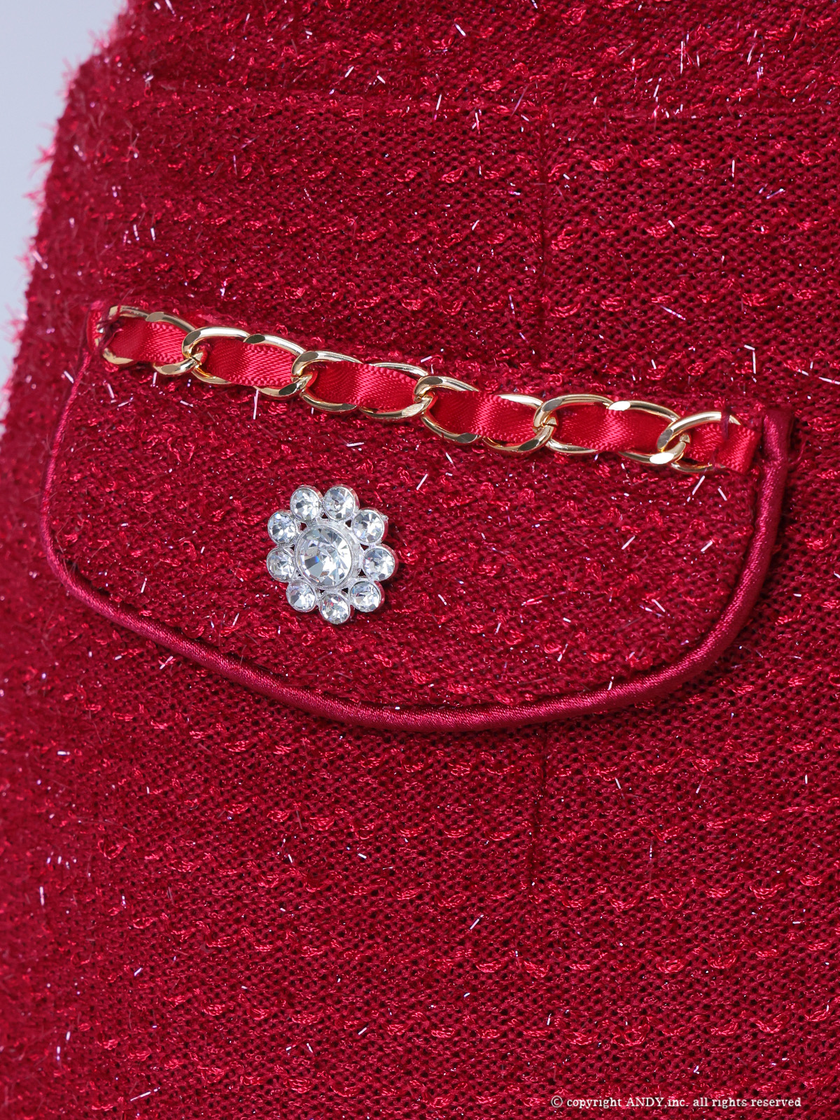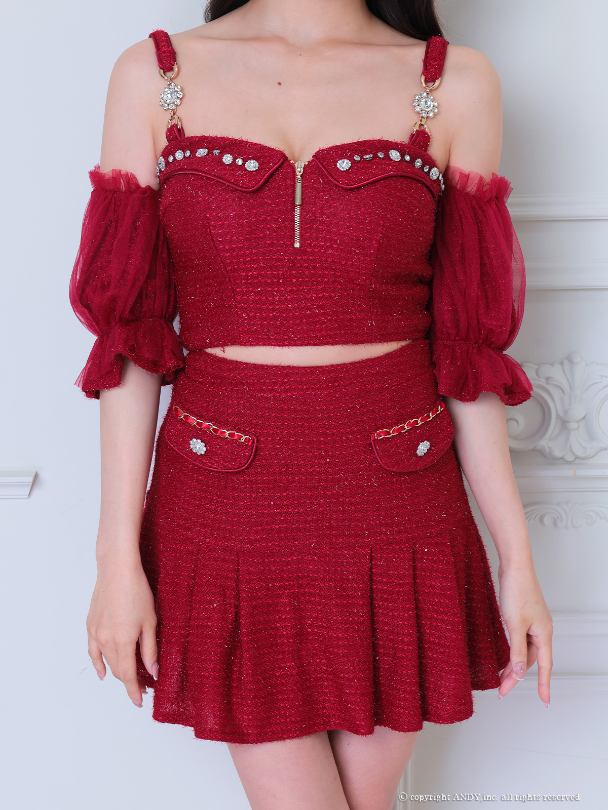 XSサイズあり【an /アン】ストレッチ/ ツイード/ ビジュー/ バストジップ/ 2WAY/ ハーフスリーブ/ 袖あり/ プリーツ/ フレア/ セットアップ/ ミニドレス/ キャバドレス[OF05]
