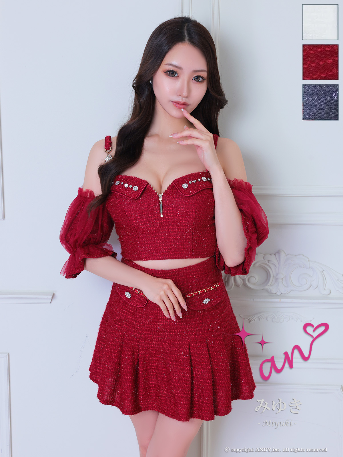 - > XSサイズあり【an /アン】ストレッチ/ ツイード/ ビジュー/ バストジップ/ 2WAY/ ハーフスリーブ/ 袖あり/ プリーツ/ フレア/ セットアップ/ ミニドレス/ キャバドレス[OF05]