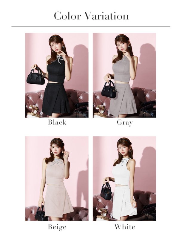 - > XSサイズあり【an /アン】アメスリ/ リボン/ バストジップ/ プリーツ/ ビジュー/ スパンコール/ フレア/ アシンメトリー/ セットアップ/ ミニドレス/ キャバドレス[OF05]