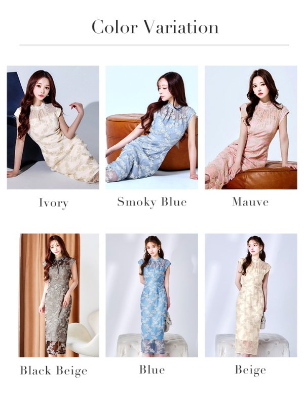 - > XLサイズあり【AMORA GRACE / アモーラグレース】 オケージョンドレス/ パーティードレス/ お呼ばれドレス/ 総レース/ ハイネック/ フレンチスリーブ/ ミモレ丈/ ワンピース/ キャバドレス[OF05]