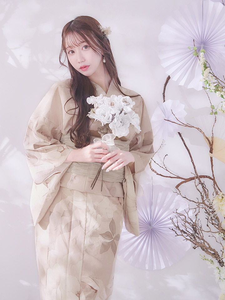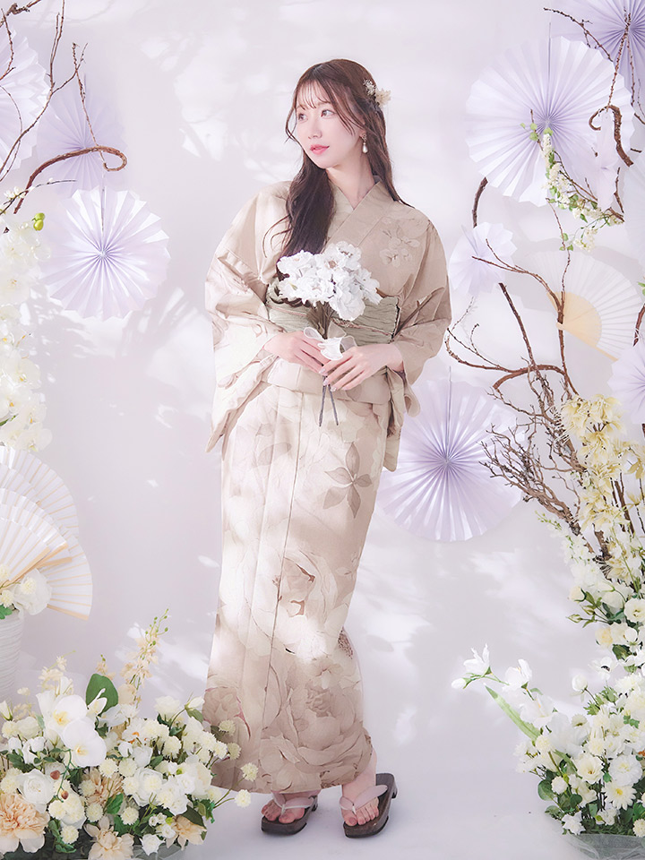 【即日発送】ベージュフラワー浴衣【浴衣3点セット 浴衣/帯/下駄】[OF04] [Y-9141-sb-dzao-P-F-25INFL-1]