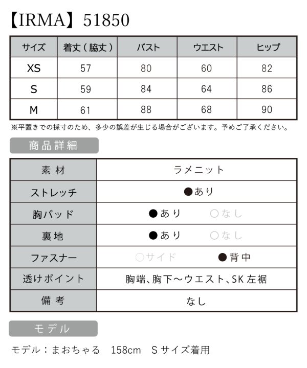 B:88 / W:68 / H:90 [着丈](脇下):約61cm |