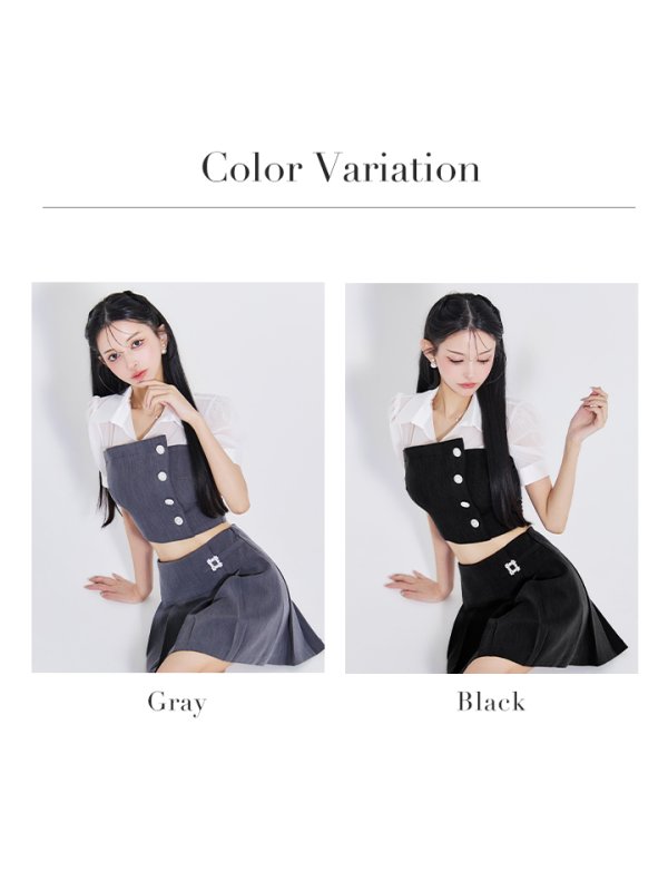 襟付きのアシンメトリートップスが目を惹くセットアップミニドレス♡