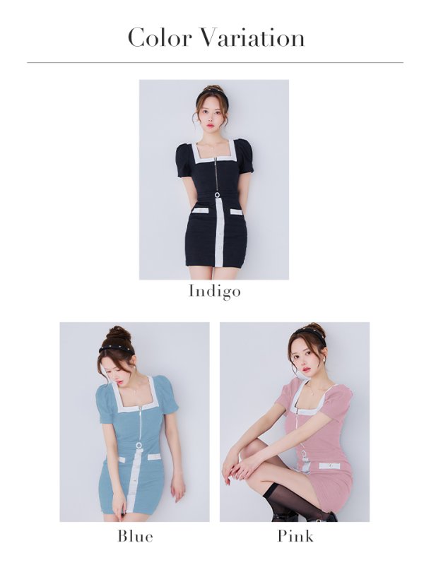 - > XSサイズあり【an /アン】バイカラー/ パイピング/ フロントジップ/ ビジューボタン/ ウエストベルト/ パフスリーブ/ 袖あり/ タイト/ ミニドレス/ キャバドレス[OF05]