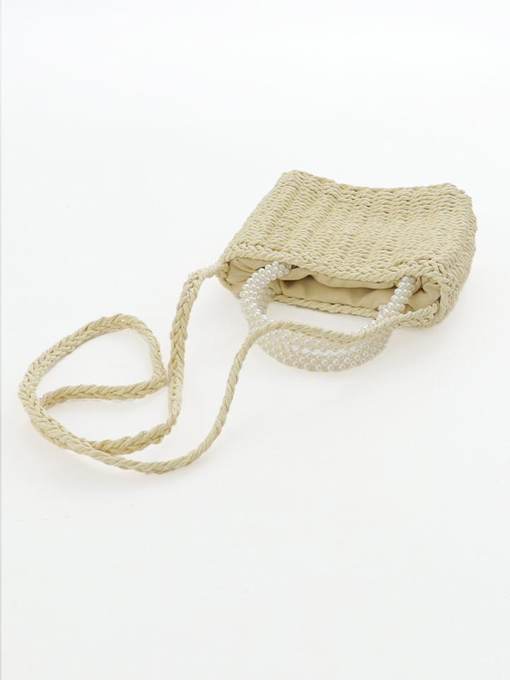【バッグ】パールハンドル編みバッグ【1カラー】[YMT] [B1046-250626-1]